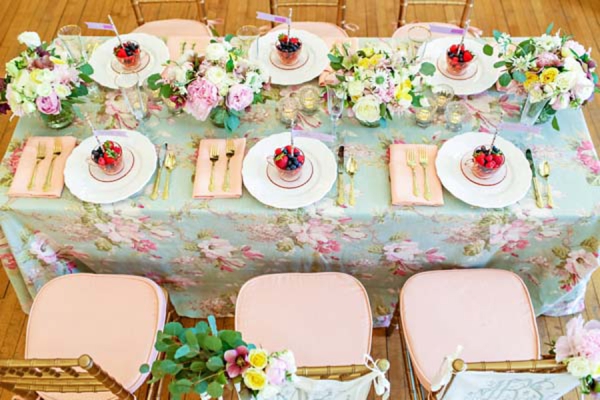 You can’t get much more vintage than combining peach, moss, and lace. Life by Leanna styled this welcoming springtime tea table.